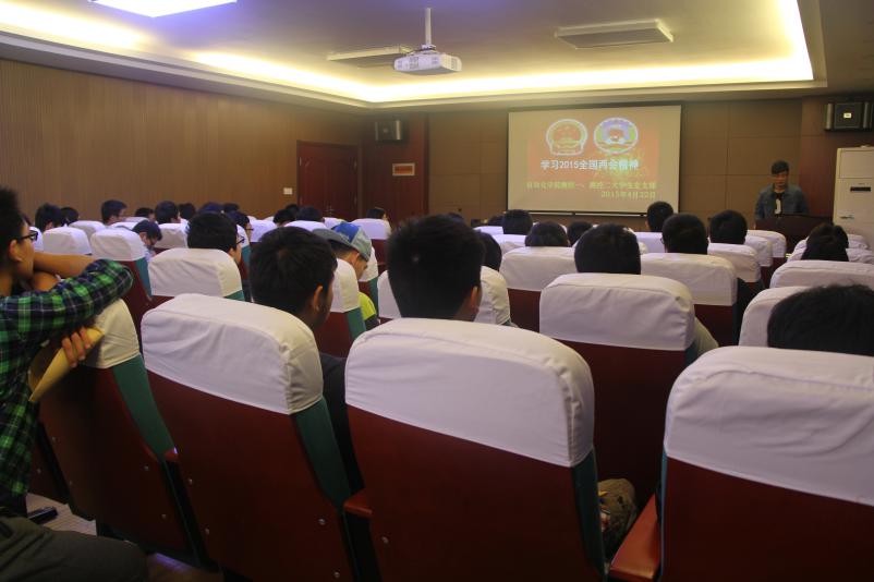 (通讯员 王晋超)4月22日晚8:30,测控一大学生党支部学习2015全国两会精神会议在信息楼310报告厅举行,本次会议由测控一党支部书记柏明明主持,支部所有党员和入党积极分子参加了此次会议。