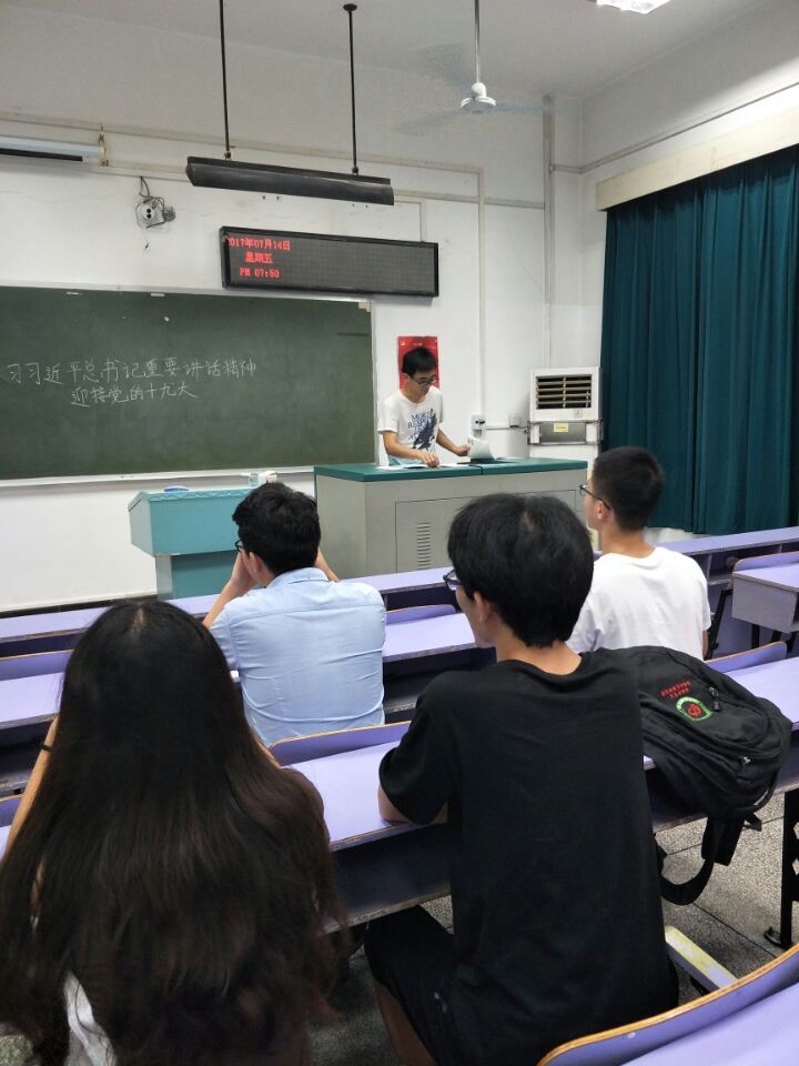 二党支部于2017年9月27日在教三楼502召开九月主题党日会议,会议主题为:献礼十九大,我为什么入党。本次主题党日会议由李景钊同志主持召开,简旭同志负责记录会议。