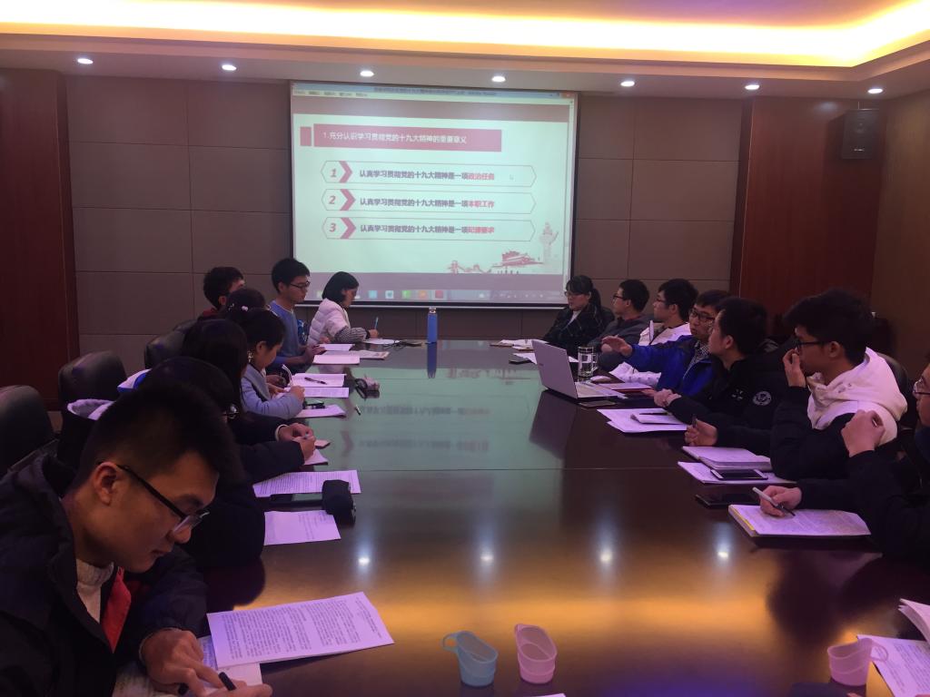 中国共产党第十九次全国代表大会于2017年10月18日至24日在北京隆重召开,这是包括广大青年学生在内的全党全国各族人民共同关注的一件大事,为深入学习贯彻党的十九大精神,禁漫天堂下载 深入开展了系列学习实践活动。2017年11月,禁漫天堂下载 党委书记董浩斌、副院长曹卫华、副院长金星、副院长陈鑫、党委副书记何建新、团委书记谭文伦及办公室组织人事秘书孔娟参加学生党支部支部会议,带领学生党员学习党的十九大精神。