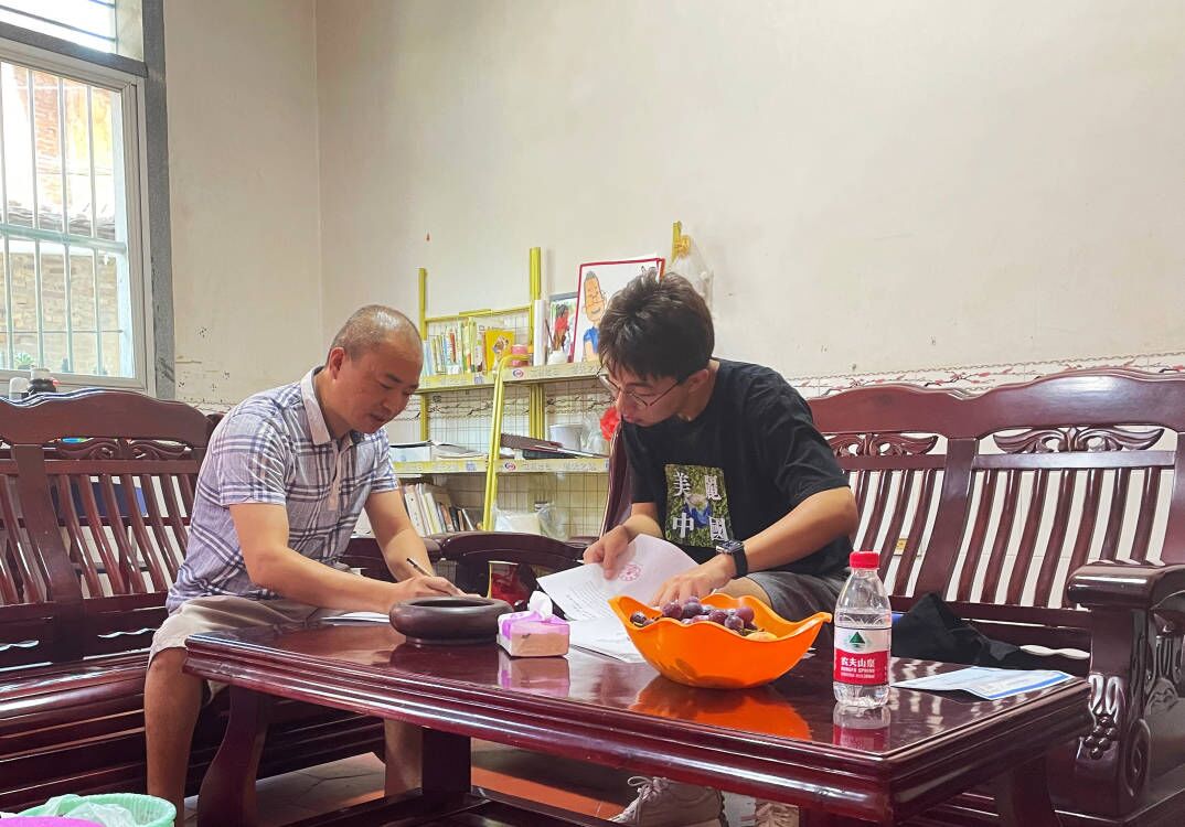 黄同学家庭经济状况为特别困难,父母残疾,家庭经济收入低,家庭也有负债。家庭成员除该生、父母和奶奶以外,还有一个还在上学的妹妹。我们了解到,家庭在教育方面也同样承受着较大的经济压力。同时,我们还联系到了当地村干部林金华同志,并与其进行了交流。林金华同志向我们介绍了当地的基本情况与对困难家庭的帮扶工作。村委会重视教育奖励,在当地企业家的资助下于2018年成立奖教奖学联合会,用于奖励成绩优异的学生。同时,村委会大力推进精准扶贫工作,牵头解决了贫困家庭的就业问题。