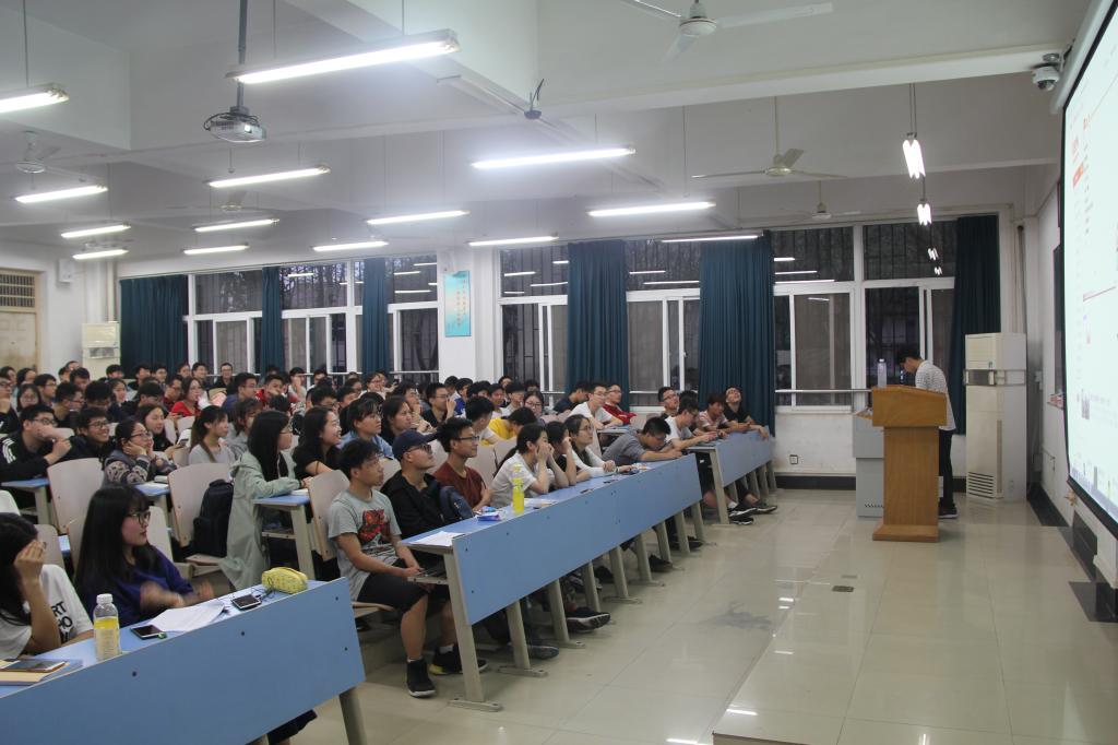 在高级组及创意组的培训中,王锐首先从比赛跑到、评分说明和比赛要求等方面对赛题进行了透彻的分析,紧接着的给同学看了一个车模,让同学们对车的外形有了一定的了解。随后对如何选择单片机和选择什么样的单片机给出了自己的一些看法,在此过程中王锐还穿插讲解了电磁传感器如何检测磁场。在培训的最后,王锐对如何使用干簧管来使小车停下进行了讲解。在培训现场,同学们踊跃提问,王锐均耐心地解答了同学们的问题。