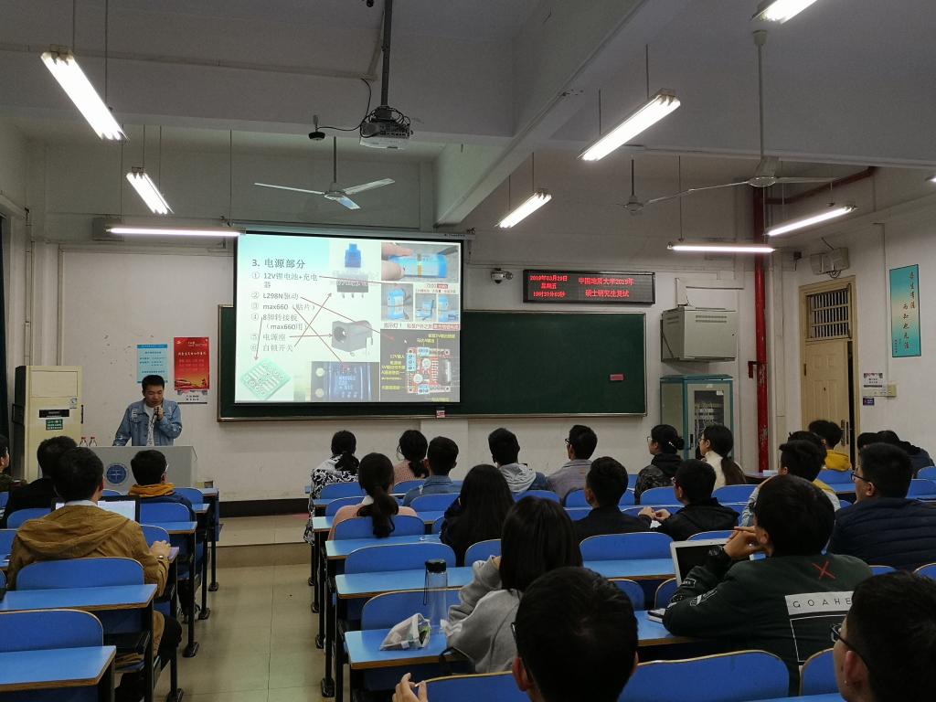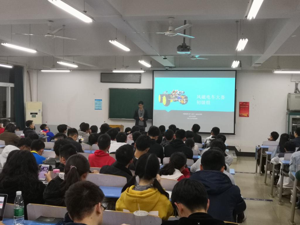 第五届风磁电车大赛第一次培训顺利进行。本次培训地点,初级组培训在北综楼202开展,高级组和创意组的培训在北综楼209开展。周丹—湖北省电子设计竞赛特等奖获得者,受邀为初级组培训员,章文—湖北省电子设计竞赛特等奖获得者、孙凯—智能车国赛华南赛区二等奖获得者,分别受邀为高级组和创意组培训员。