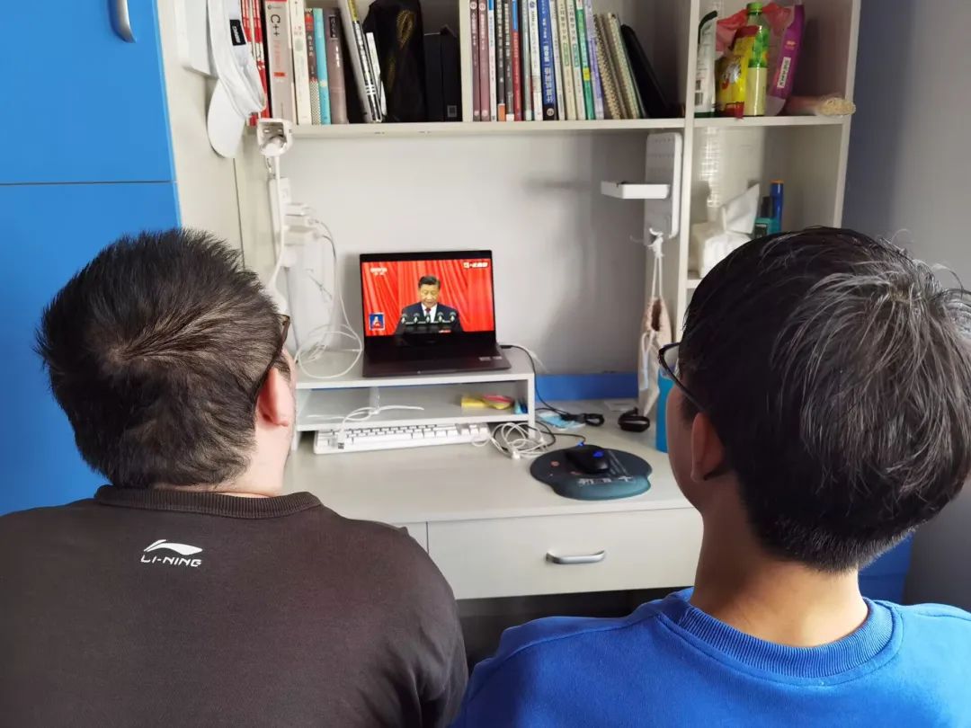 本研学生在宿舍、实验室、线上班会等形式开展集中观看