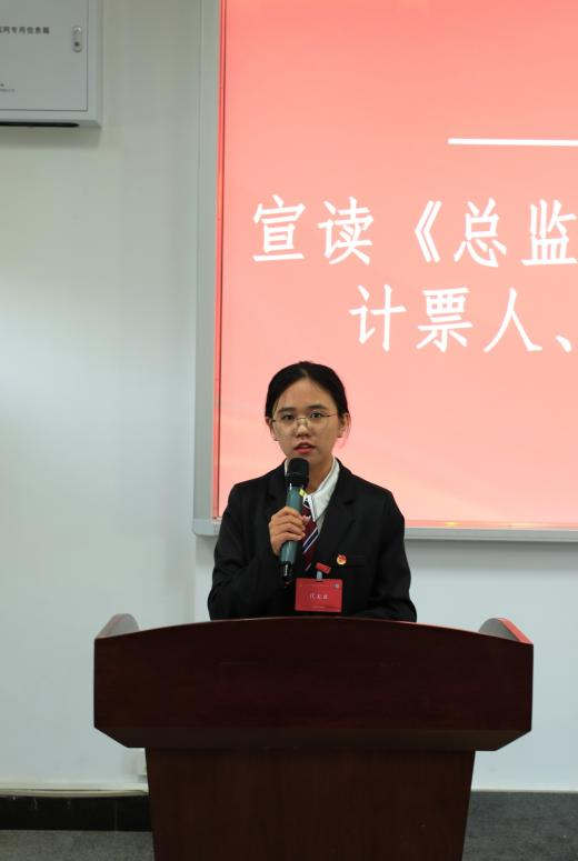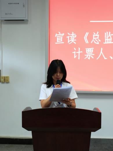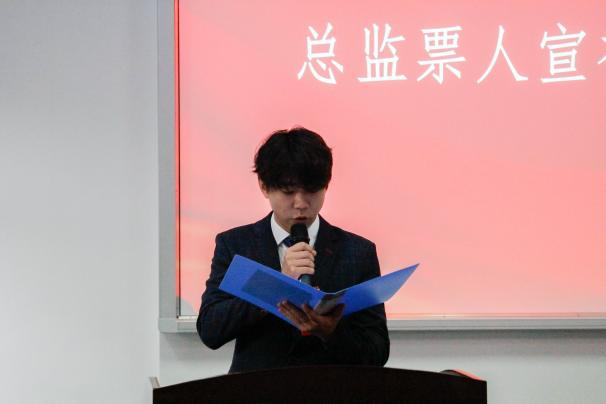 2023届团学组织负责人宋紫琴宣读《总监票人、监票人、总计票人、计票人名单》。