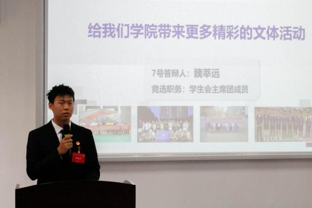 特色文化和文体活动建设,部门制度建设、技术水平,以及相关竞赛、如何进行制度改革等问题,向各位候选人进行了提问。对此,每一位候选人都沉着冷静,充分展示了他们对未来的学生工作的各种构想,表达了自己对相关工作的热爱和愿意为同学们服务的诚心,并且尽自己所能地回答了各评委的问题。