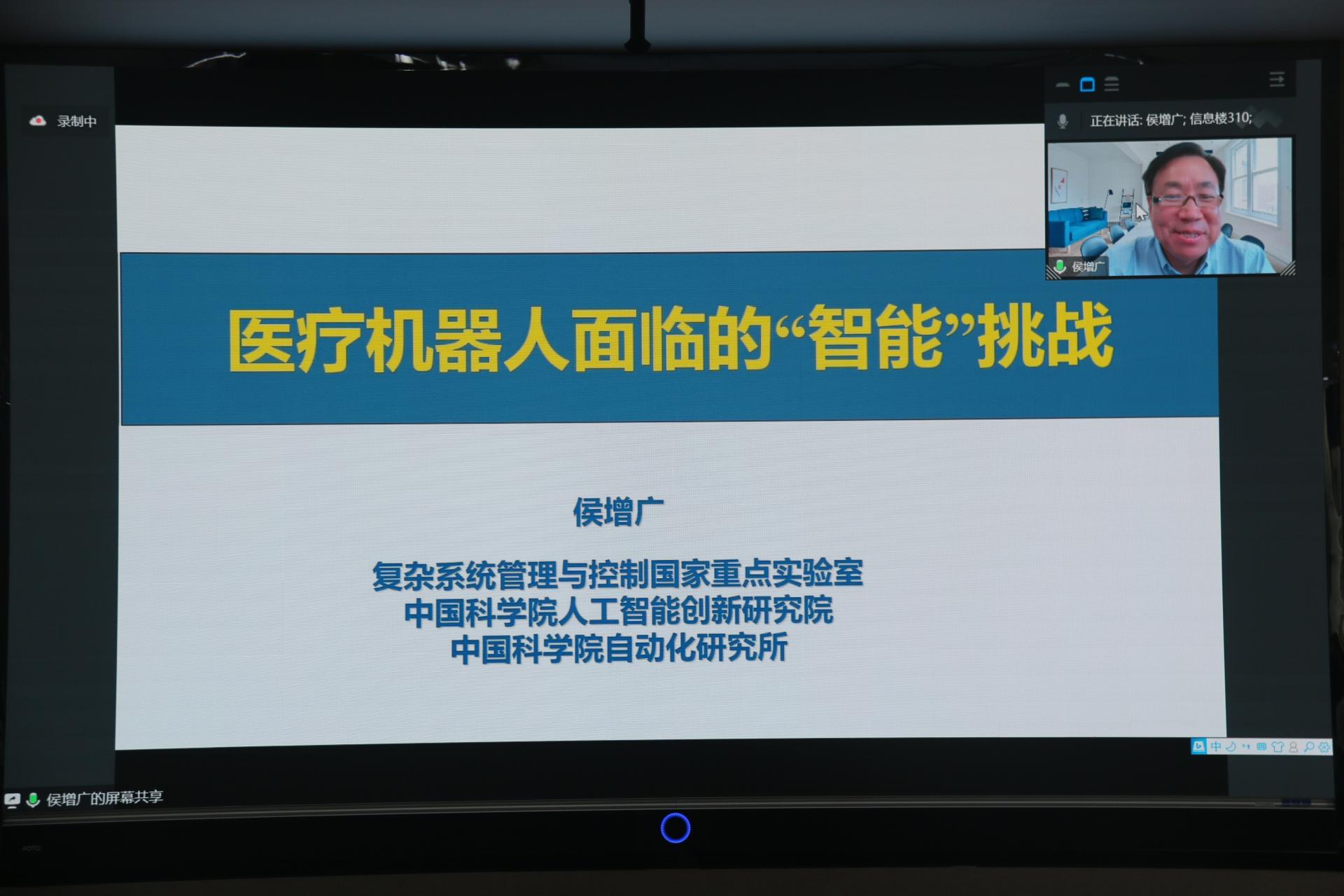研究所侯增广研究员通过线上作了题为《医疗机器人面临的“智能”挑战》的学术报告。