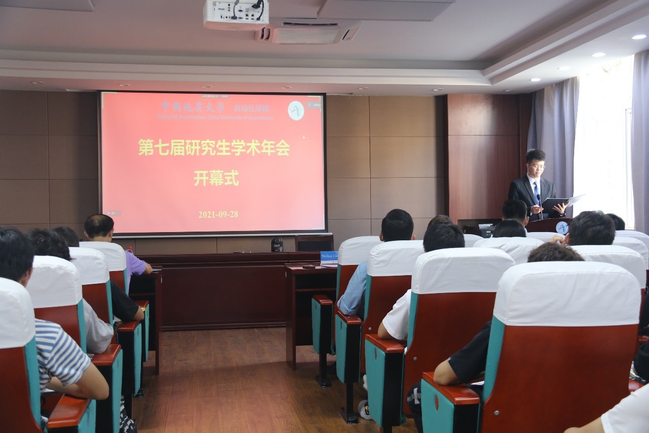 院长曹卫华讲话。他指出,随着研究生规模的扩大,学术年会这样的活动越来越有声势,让学生越来越有收获,希望学生主动创新,积极思考,提高水平。