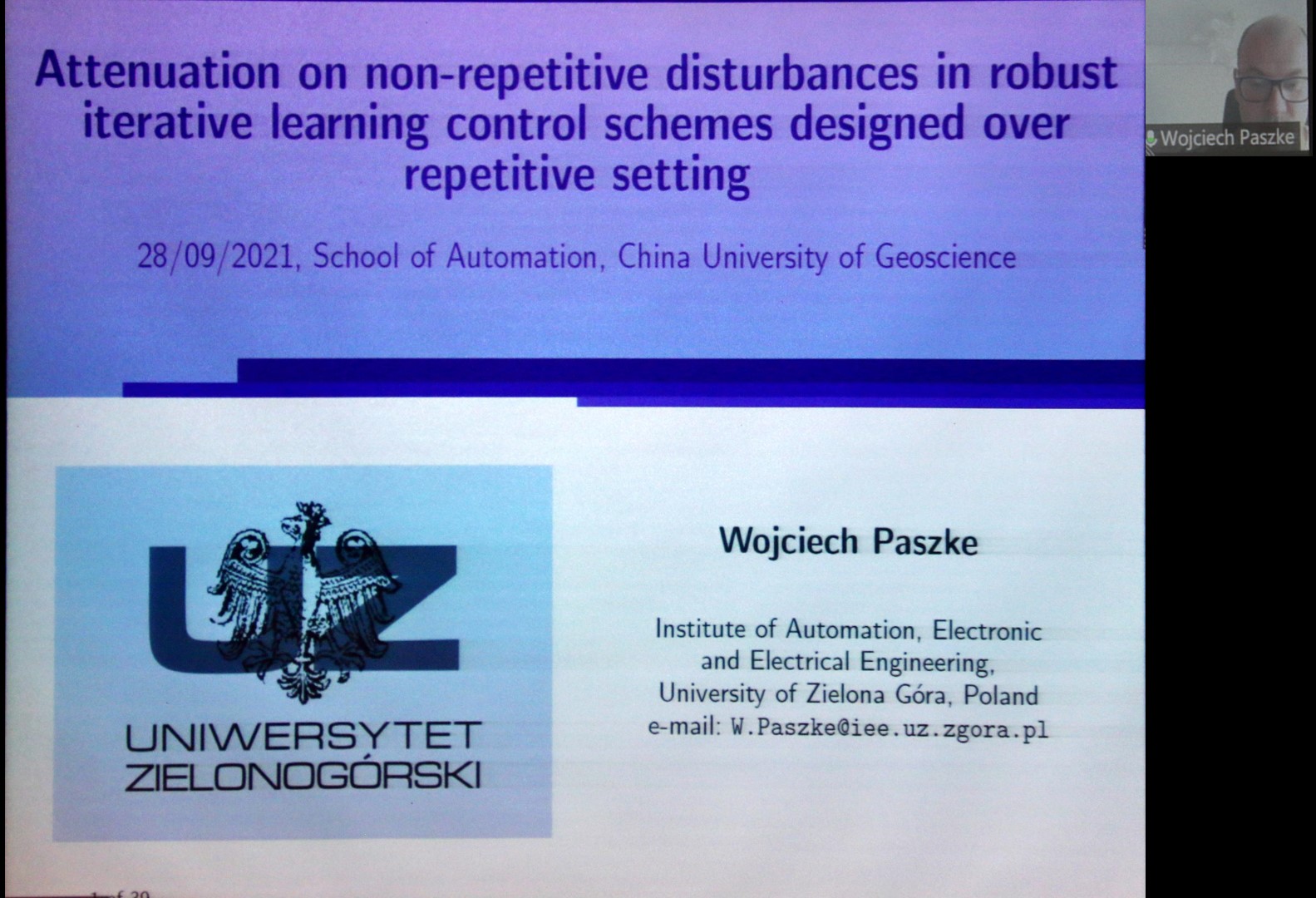 王庆国教授在线上为师生作了题为《Control Design with Guaranteed Transient Performance: An Approach with Polyhedral Target Tubes》的学术报告,波兰绿山大学Wojciech Paszke副教授作了题为《Attenuation on Non-Repetitive Disturbances in Robust Iterative Learning Control Schemes Designed Over Repetitive Setting》的学术报告。