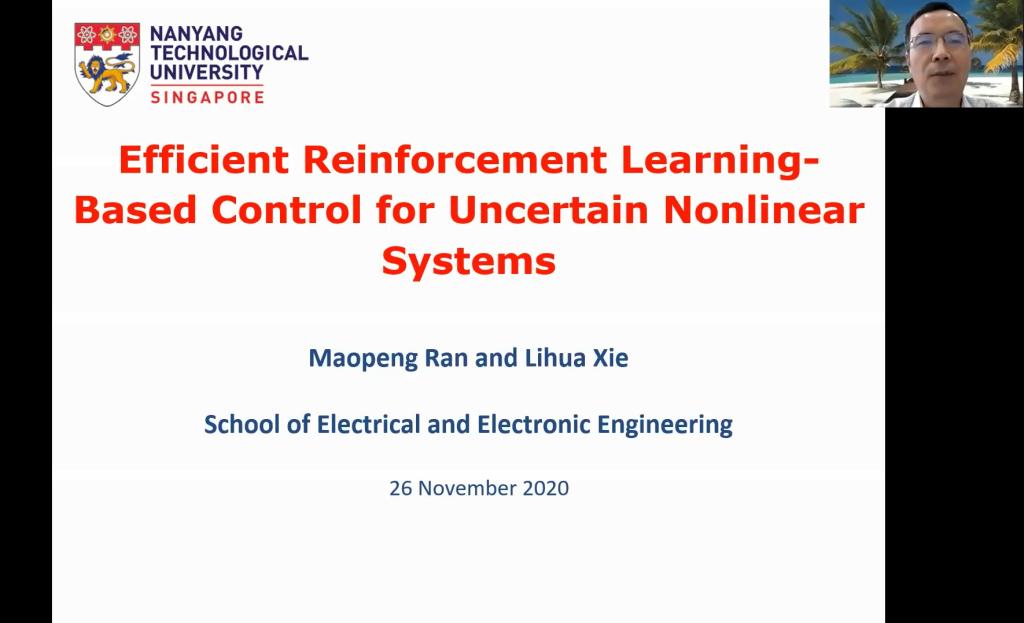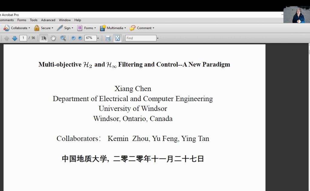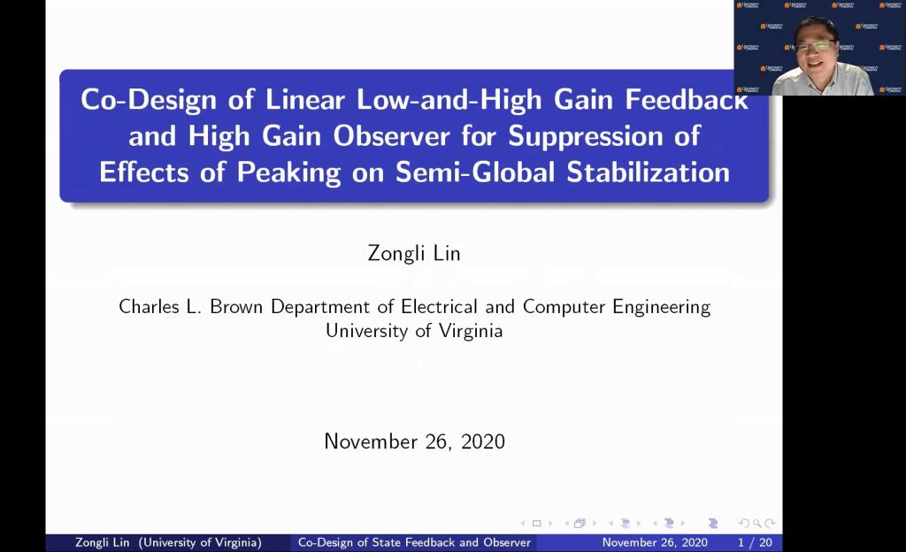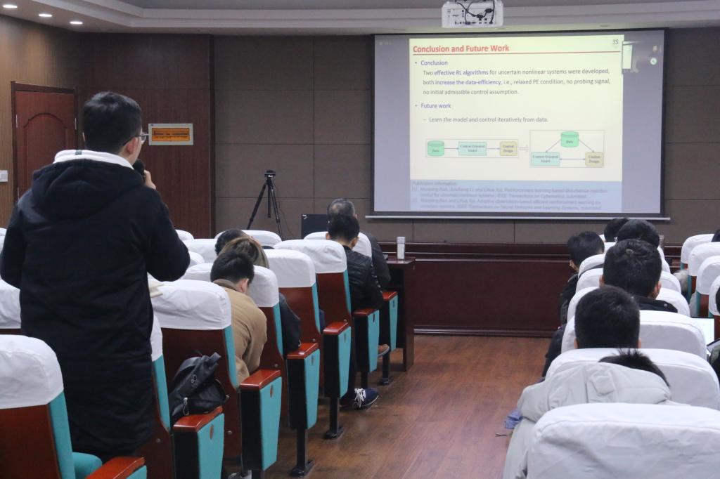 秋季学术研讨会——杰出学者报告会”顺利举行。美国弗吉尼亚大学林宗利教授作了题为《Co-Design of Linear Low-and-High Gain Feedback and High Gain Observer for Suppression of Effects of Peaking on Semi-Global Stabilization》的学术报告,新加坡南洋理工大学谢立华教授作了题为《Efficient Reinforcement Learning-Based Control of Uncertain Nonlinear Systems》的学术报告,美国纽约大学姜钟平教授作了题为《Reinforcement Learning and Optimal Control for Uncertain Systems》的学术报告,加拿大阿尔伯塔大学黄彪教授作了题为《Robustness in Data Analytics》的学术报告,加拿大阿尔伯塔大学陈通文教授作了题为《Advanced Alarm Analytics Tools Developed at the University of Alberta》的学术报告。