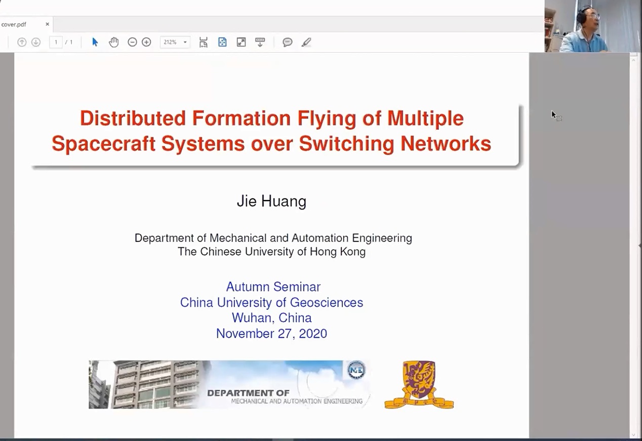 秋季学术研讨会——杰出学者报告会”第二场随后举行。澳大利亚斯威本科技大学韩清龙教授作了题为《Multi-Agent Systems Based Distributed Control and Optimization in Smart Grids》的学术报告,香港城市大学谢旻教授作了题为《Safety and Reliability of AI Systems–Some Challenging Issues》的学术报告,香港中文大学黄捷教授作了题为《Distributed Formation Flying of Multiple Spacecraft Systems over Switching Networks》的学术报告,加拿大温莎大学陈翔教授做了题为《Multi-objective H2 and H∞ Filtering and Control--A New Paradigm》的学术报告,香港中文大学陈本美教授作了题为《Research Trends in Developing Intelligent Unmanned Systems》的学术报告。