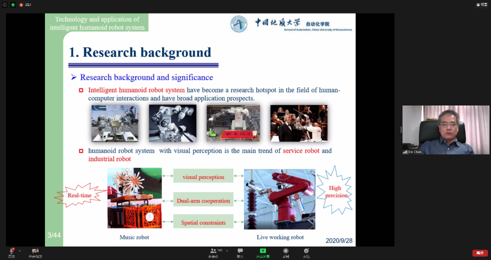 (武汉)陈鑫教授作了题为《Technology and application of intelligent humanoid robot system》的大会报告。