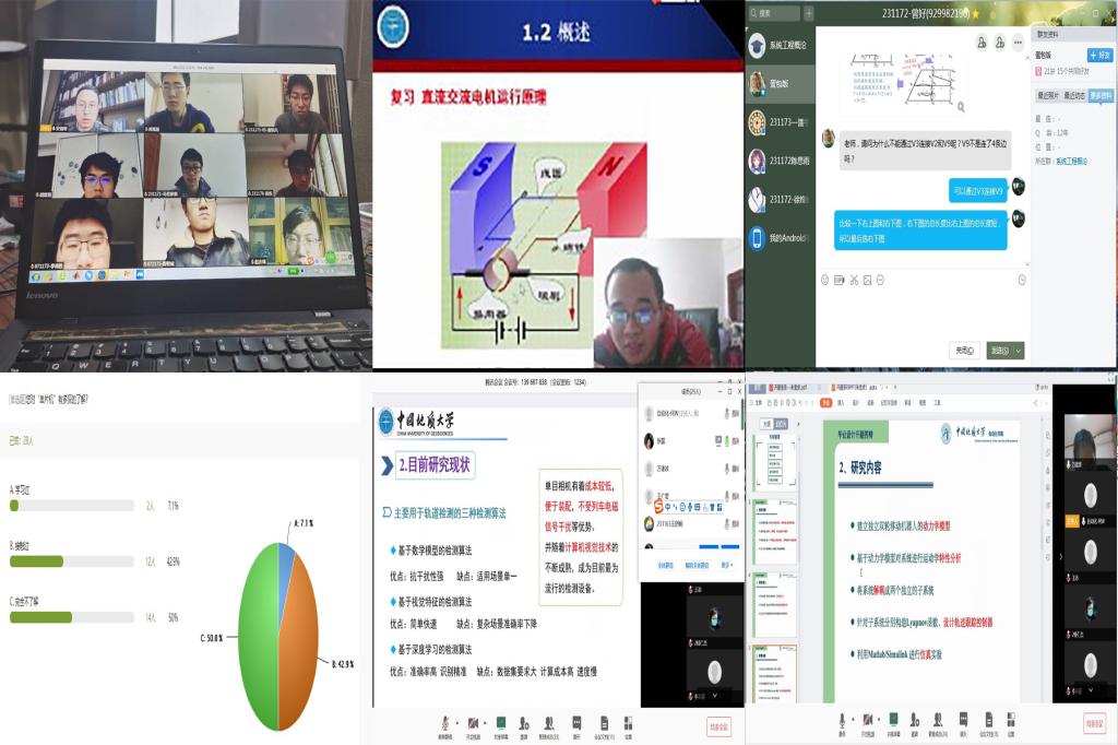 目前,已深入开展各门课程的教学工作,并取得良好的教学效果;通过腾讯会议、QQ在线答疑等方式,已完成5个小组90名学生线上毕业设计开题答辩工作,2020年毕业研究生的预答辩工作也在紧锣密鼓地进行中,导师和研究生通过网络实时沟通,指导科研和论文修改等工作。