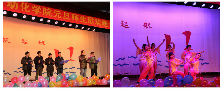 领导及教职工、全院研究生及本科生欢聚一堂、辞旧迎新。