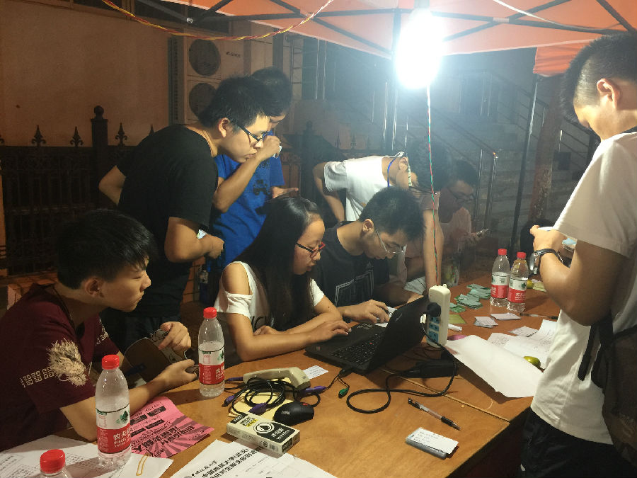 团学联的干部及大二年级的同学完成了迎新场地的布置工作,每位同学都热情高涨,期待新一届同学的到来。