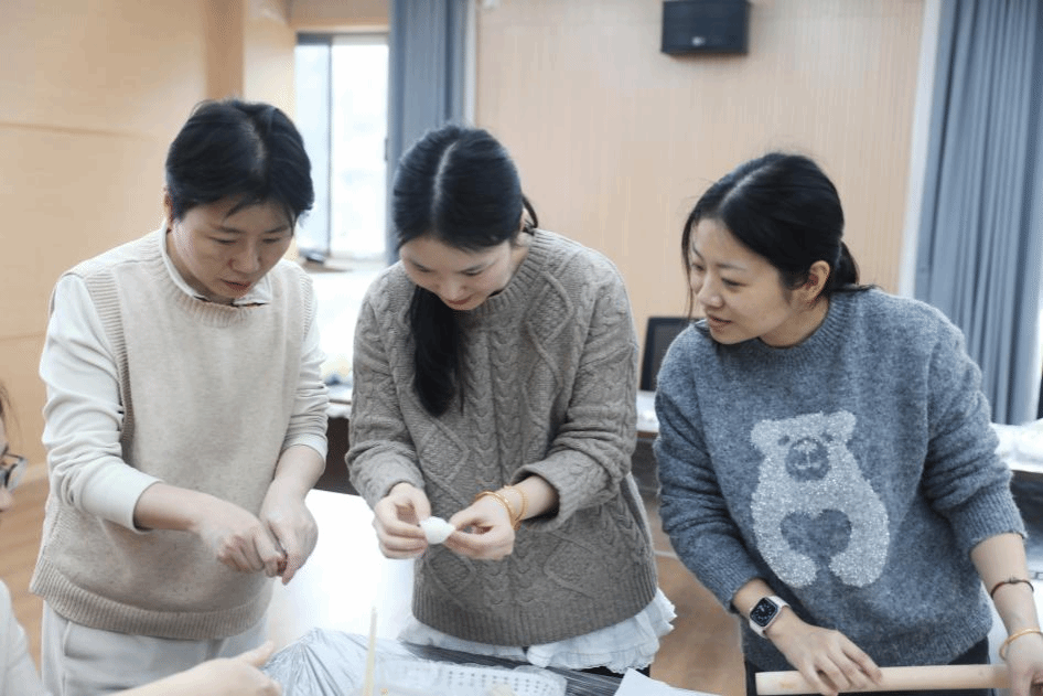 下午三点,活动开始,女教职工们纷纷拿出了看家本领,和面、擀皮、包馅,动作娴熟,配合默契。一双双拿惯粉笔、敲惯键盘的巧手,展现了另一面的才能。当一盘盘形态各异、饱满诱人的饺子就摆在眼前时,大家突然感受到了生活的另一种美好!此时,教学和科研的紧张早已被轻松惬意的感觉代替,大家有的交流各种包饺子技巧,有的聊起了家常。随着小学生放学,一些孩子也加入了进来,现场愈发热闹。欢声笑语交织,整个院区充满了“家”一般的温暖与欢乐。