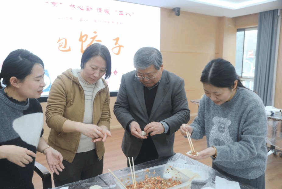 阳春三月,春意盎然。为庆祝“三八”国际劳动妇女节,丰富女教职工的精神文化生活,3月6日下午,院分工会组织开展了“巧手包饺子,温情暖三八”女教工包饺子活动。