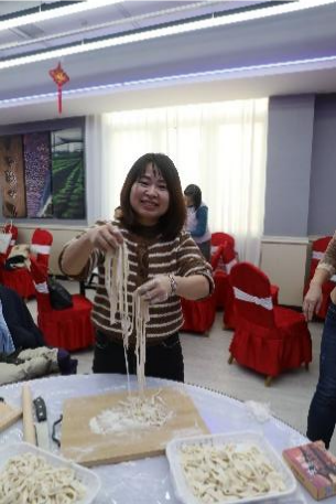 领导的重视。部分女教职工和领导在完成下午的“预答辩”后赶来参加活动。在谈笑风生中,一盘盘热腾腾的饺子端上了桌子,大家共同分享劳动成果。