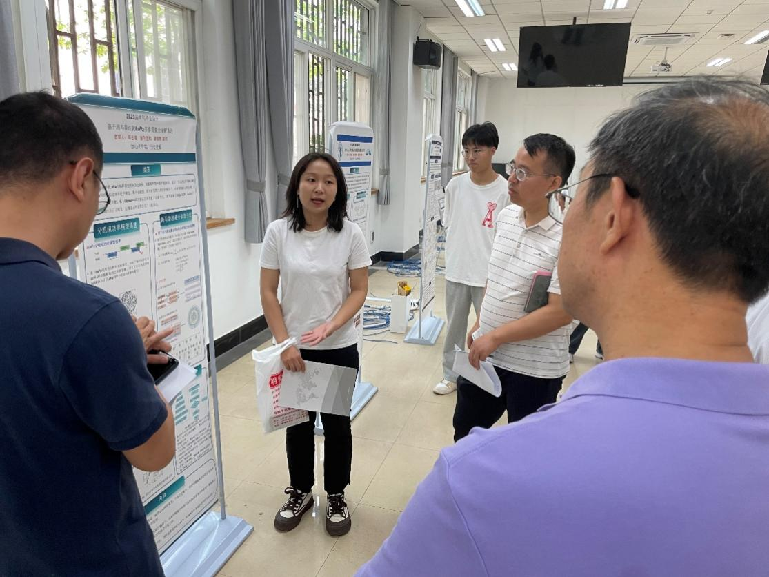学生通过海报讲解的方式展示了毕业设计(论文)情况,并现场评委和同学积极交流。在交流过程中,评委老师对参展论文从创新性、思想性、学术性和实际应用价值等方面进行了评价并对学生的问题分析能力、海报制作等方面进行全面点评。