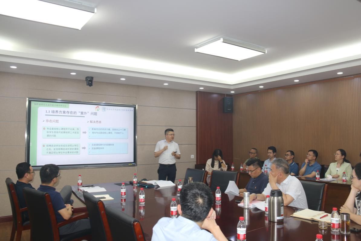 会议伊始,刘振焘老师对2024年上半年研究生学位授予情况、校级优秀论文评优结果以及2024年上半年学位论文盲审工作进行了全面详细的介绍。