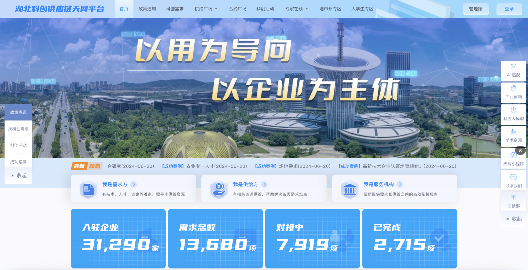 据介绍,湖北科创供应链“天网”平台为入驻企业提供了丰富的资源和服务,满足企业技术、人才、金融、场景四类需求。通过平台,企业可以更加便捷地获取所需资源,加速科技创新和成果转化。湖北科创供应链平台坚持“1+5+15需求响应机制”:1天对接、5天详细沟通、15天给出解决方案。快速响应,高效对接,大幅缩短了找技术找资源的时间。(陈卫东 通讯员 施馥甜 王曦)