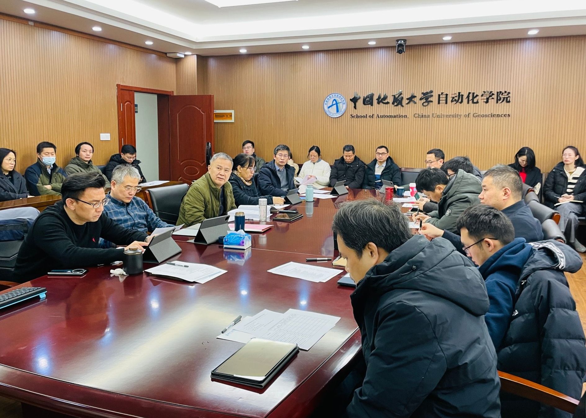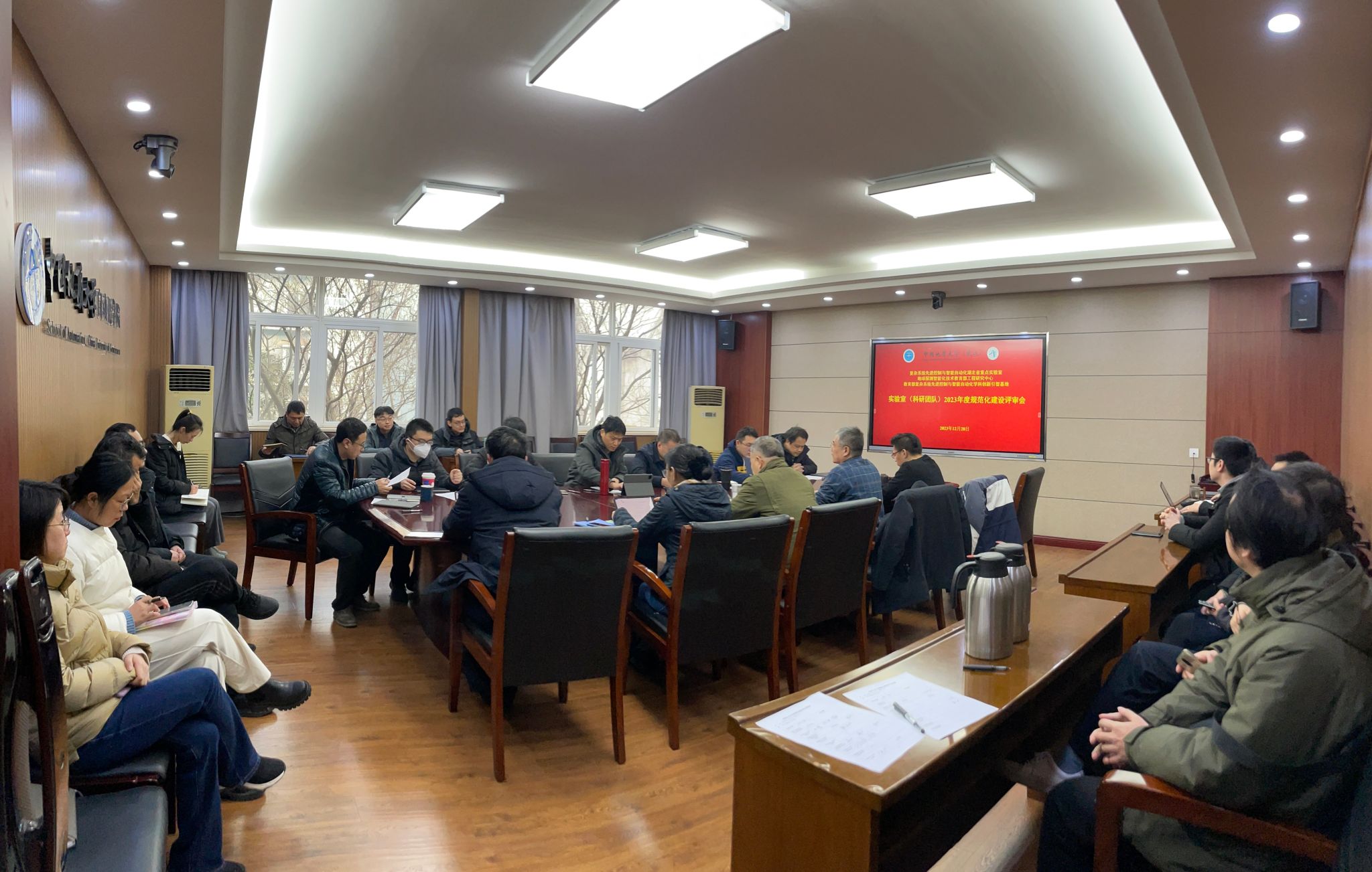 20231228日,禁漫天堂下载 召开2023年度科研实验室规范化建设评审会。复杂系统先进控制与智能禁漫天堂下载 湖北省重点实验室、教育部复杂系统先进控制与智能禁漫天堂下载 学科创新引智基地、地球探测智能化技术教育部工程研究中心(简称工程中心)三个平台所属的十七个实验室均参加汇报。工程中心主任吴敏教授、院长曹卫华教授、院学术分委员会成员、实验室负责人及其成员参加了评审会议。会议由副院长陈鑫教授主持。