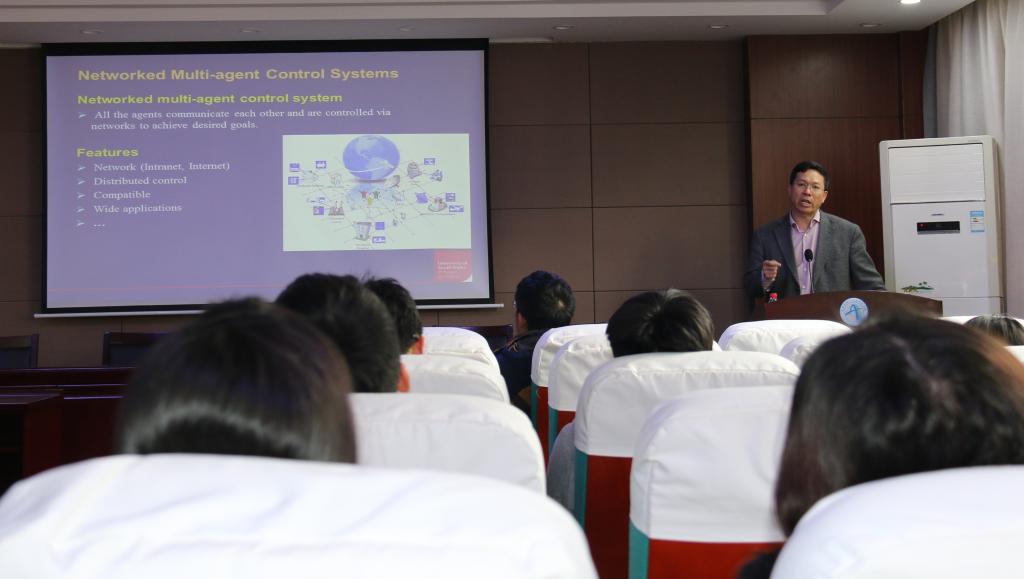 刘国平教授对多智能体控制系统和网络化控制系统进行了分析,简要概述了主流控制方法。随后,刘教授基于MTLAB中的Simulink工具箱建立了一个多智能体系统,并将此多智能体系统看作一个网络化系统,基于网络控制的方法实现了此系统的一致性和稳定性控制。最后,刘教授总结了核心技术问题,并鼓励大家潜心科学研究。