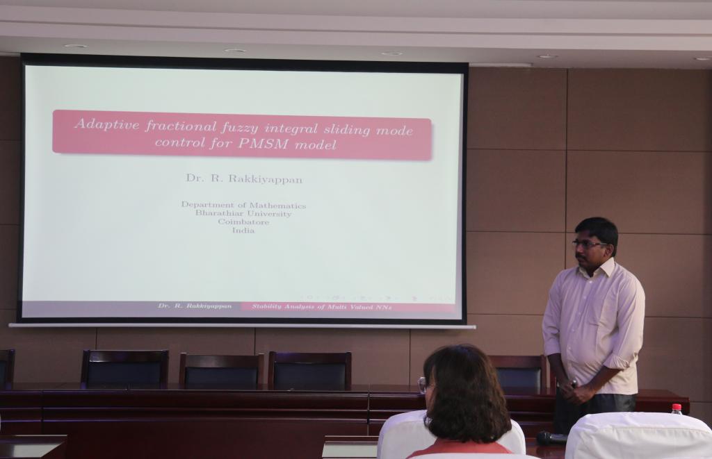 530日,印度巴拉蒂尔大学助理教授Rakkiyappan Rajan来禁漫天堂下载 作了题为《Adaptive fractional fuzzy integral sliding mode control for PMSM model》的学术报告。
