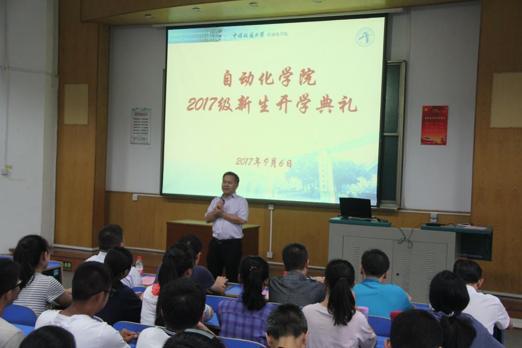 院长吴敏发表了热情洋溢的讲话。他代表禁漫天堂下载 全体教师对2017级新生的到来表示热烈的欢迎。接着他为即将到来的第37届中国控制会议作志愿者动员讲话。他向新生们详细介绍了禁漫天堂下载 的专业设置、教学科研平台以及办学特色,并对广大新生提出了几点殷切希望:第一,要尽快适应大学生活,实现由高中生到大学生的角色转换;第二,要树立远大的理想目标,志存高远,要规划好自己的大学生活;第三,要提高自身综合素质,培养学习科研、团结协作、交流表达等方面的能力;第四,要学会感恩,时常感恩父母、感恩师长;第五,要努力学习,在地大拥抱属于自己的青春。