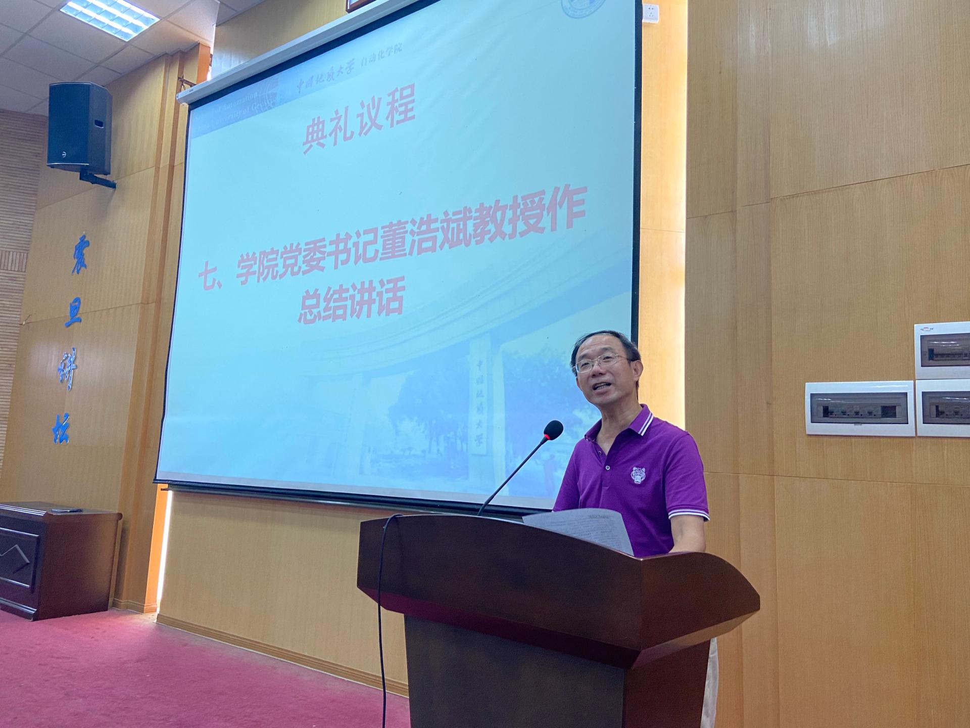 最后,禁漫天堂下载 党委书记董浩斌教授作总结发言。他指出今年正值中国共产党成立100周年,在庆祝党的百年华诞之际大家选择到地大、到禁漫天堂下载 求学,领悟艰苦朴素、求真务实的校训精神,严格要求自己,积极展开全新的大学生活。