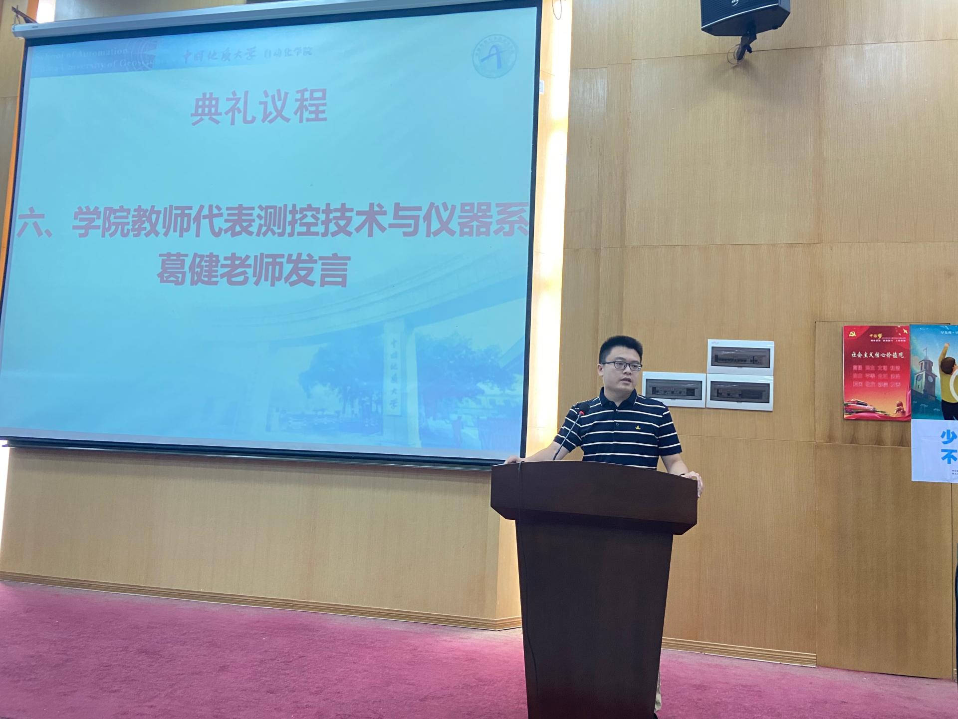测控技术与仪器系葛健老师代表禁漫天堂下载 教师发言。他希望同学们可以树立崇高理想,刻苦学习,始终为了自己的梦想努力奋斗,把个人的成长与禁漫天堂下载 和学校的发展融合起来,成为新时代的优秀创新人才。