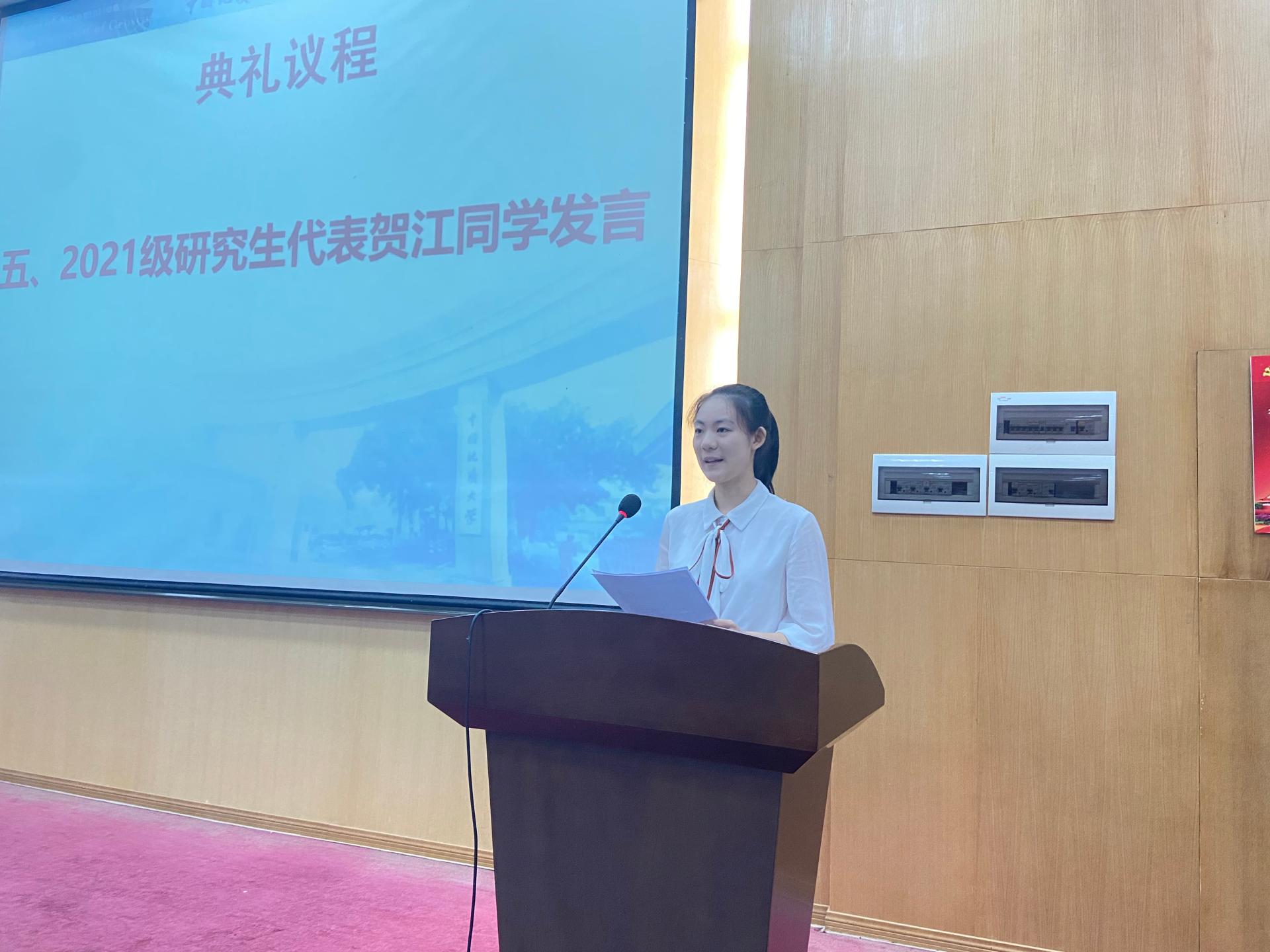 研究生新生代表贺江同学分享了自己过去四年在禁漫天堂下载 的点点滴滴,并提出三点倡议,当代研究生应当以昂扬的姿态激发梦想,展现出当代青年的精神面貌。