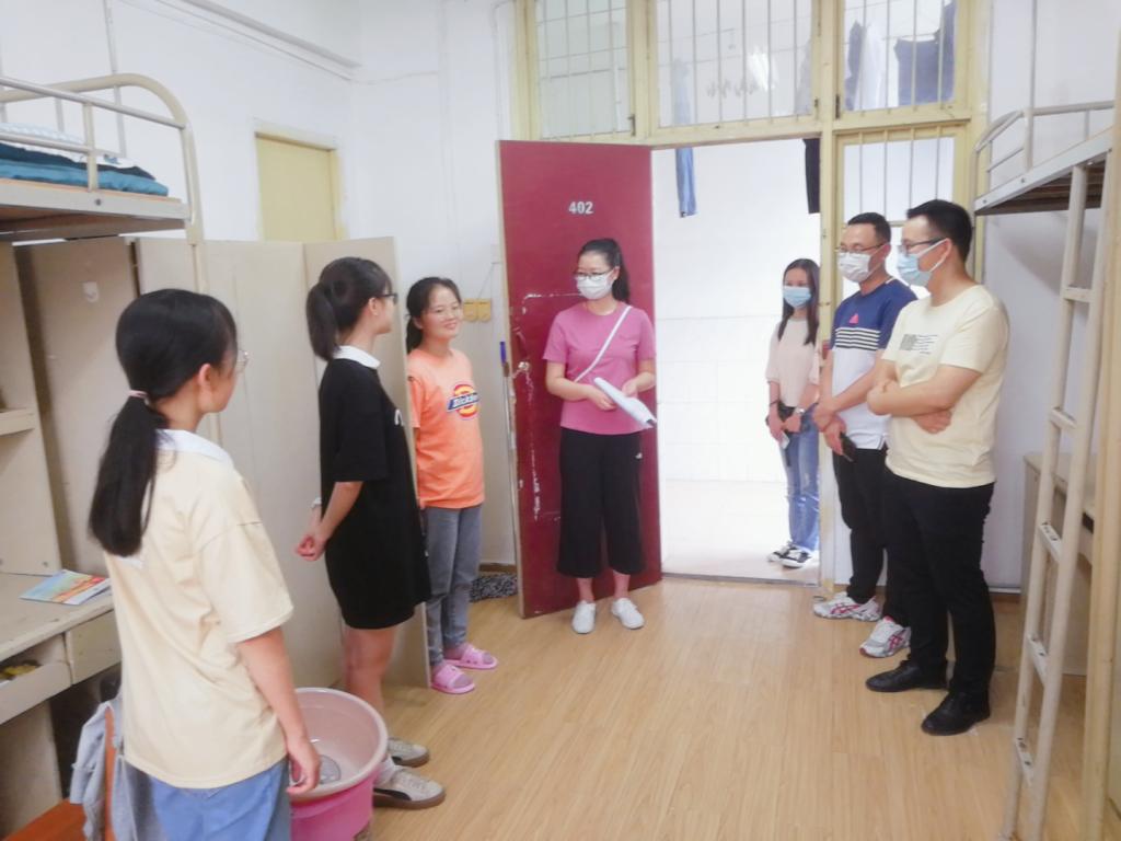 老师们一走进宿舍,学生们早已准备就位,主动向老师们问好并交流。董书记叮嘱同学要照顾好自己,增强安全意识,遇到问题及时与师长进行沟通交流。同学之间尤其是室友之间要相互包容,和睦相处,曹院长、何书记向同学们强调宿舍风气建设的重要性,同学之间要互相包容,互相帮助,营造良好的积极的宿舍风气,这是学风、院风建设的基础。同时,要尽快融入大学的生活,专业的学习是充满挑战的,希望同学们树立远大理想抱负,认真学习专业知识,将来为社会创造价值。陈鑫院长、黄兰华老师一行走访了研究生宿舍,询问了研究生的科研开展状况,希望大家充分利用时间,认真开展科学研究,提高创新实践能力。面对老师们的叮咛与关心,同学们个个精神抖擞,干劲十足,对即将展开的大学生活充满期待。