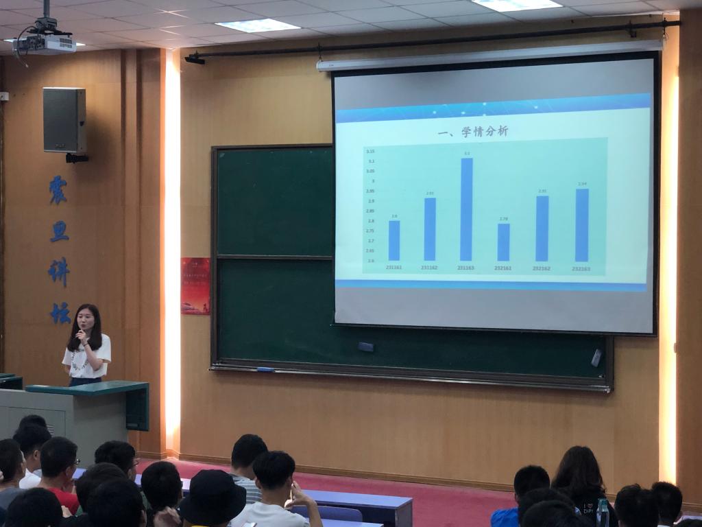 许老师从学情分析、选择发展两个方面与同学们重点展开交流。许老师深入细致地分析了各个班级的成绩,对班级学风建设提出明确要求,并鼓励同学们实事求是,脚踏实地;以就业、考研、出国、国家基层就业政策等关切学生未来发展的话题同大家交流并提出建议,建议同学们要提前准备、积极关注、主动联系;强调了国家安全和校园安全事宜。最后,许老师激励同学们要为了目标努力奋斗,全面提升自身的综合素质,努力做一名有理想、有本领、有担当的大学生。
