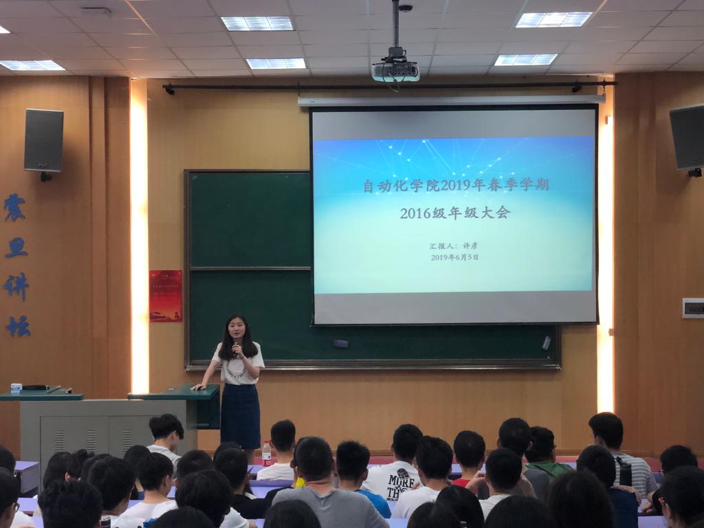 2019年春季学期2016级年级大会在教三楼111顺利举行,2016级全体本科生参会。