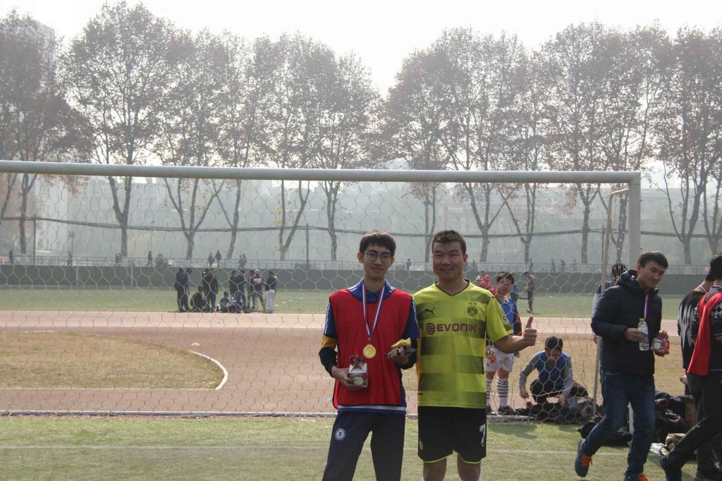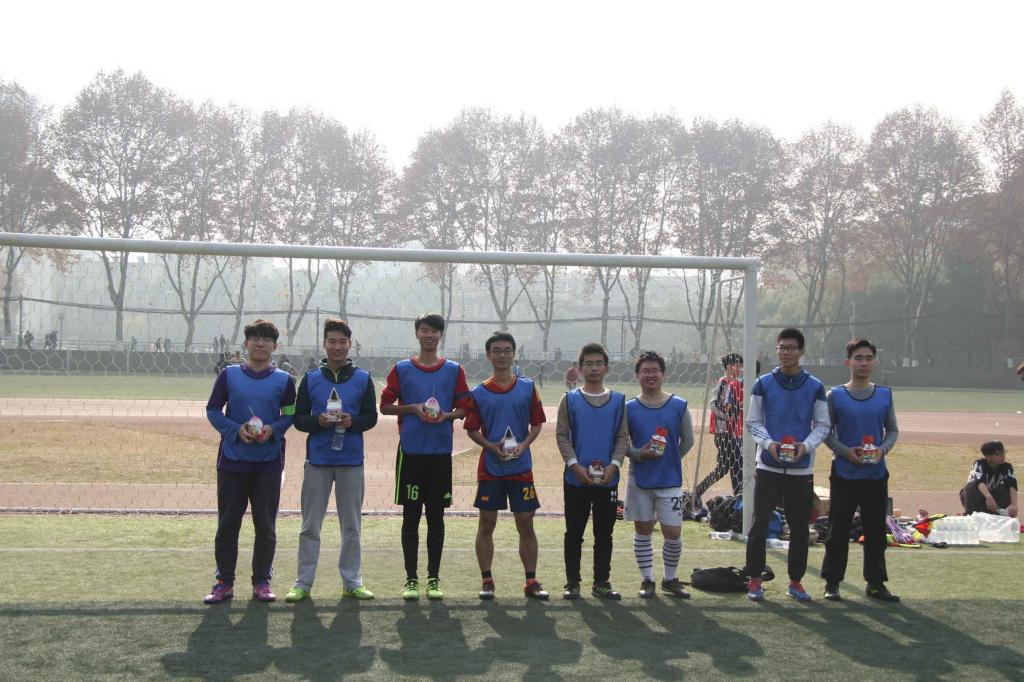 足球队队长丁呈祥进行颁奖并合影留念,其中红队队长丁佳宁凭借梅开二度成为本场比赛最佳射手。