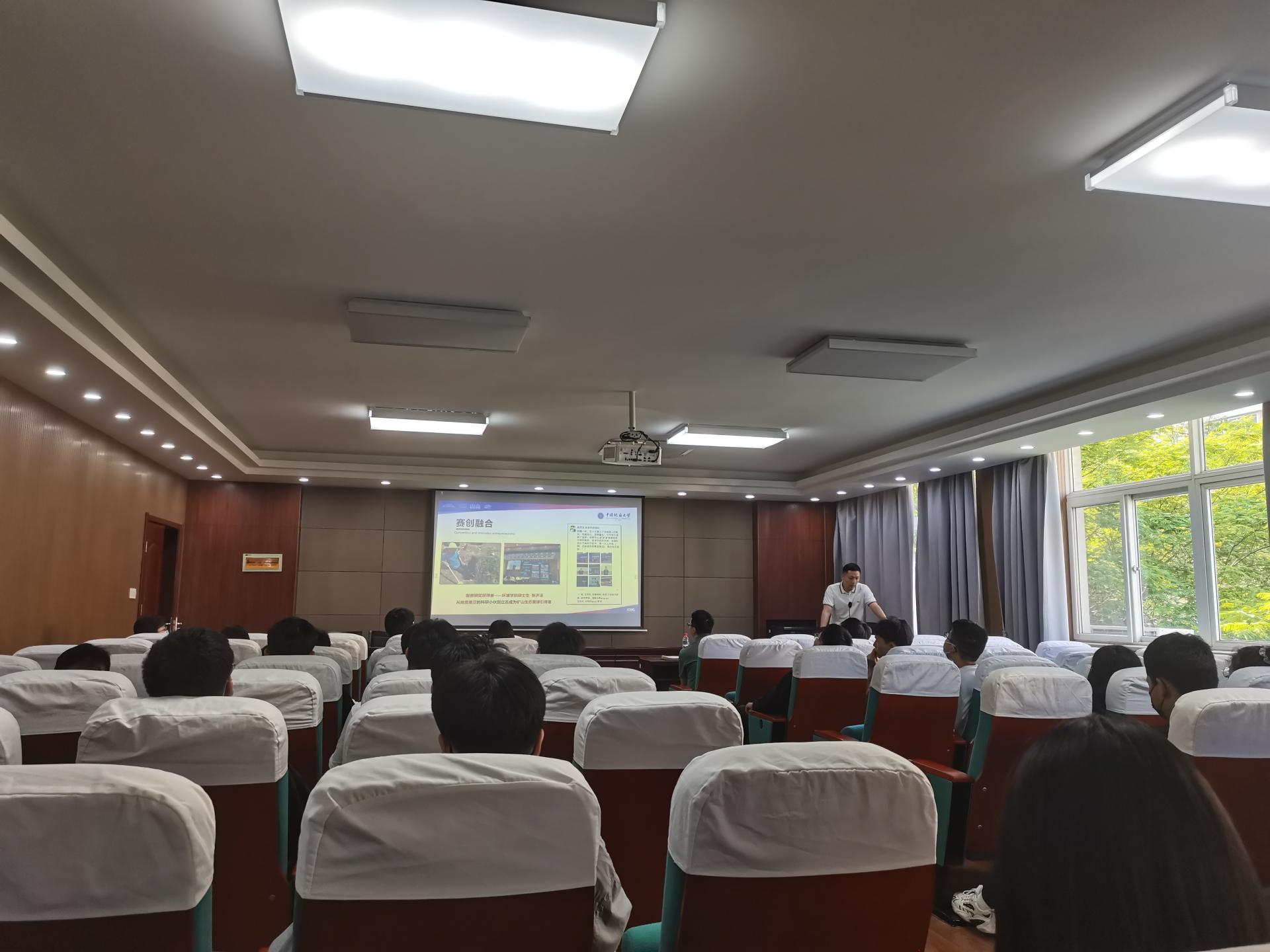 历年参加“互联网+”大赛的成绩,并指出“互联网+”大赛是人才培养的试金石,是“以赛促教”、“以赛促学”、“以赛促创”的重要途径。紧接着王老师用实际案例向大家讲述了参加“互联网+”大赛对个人发展的重要意义。“互联网+”比赛不仅是对学生的专业知识和创新应用能力的锻炼,更是对意志力的考验,能让一个人变得自信而又坚韧。