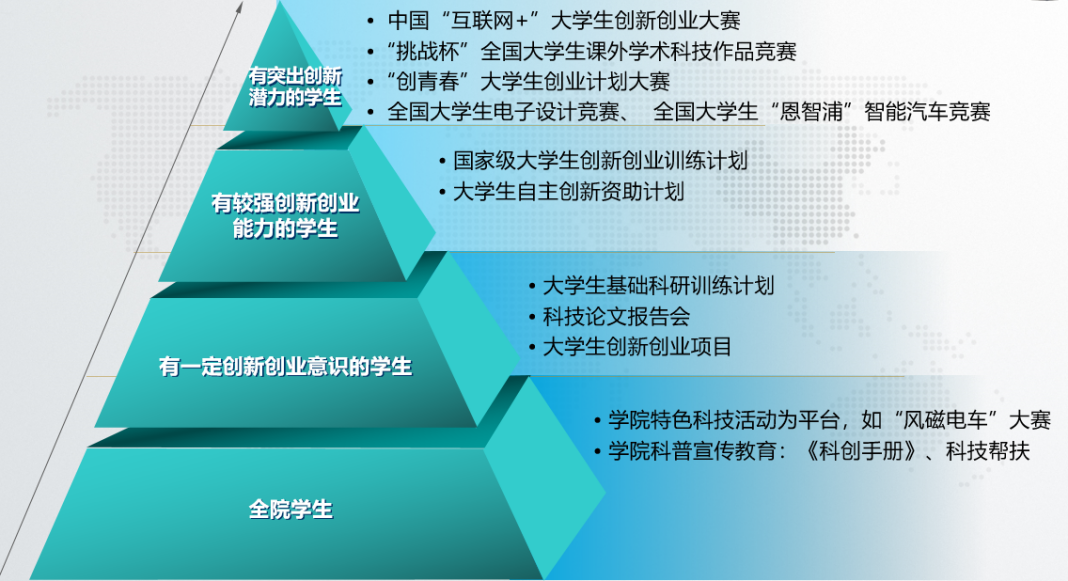 技术科普展等活动,积极营造科技创新氛围,培养学生创新意识。二是常态化举办各类学术专题报告,邀请知名专家、校友来院讲学交流,介绍专业技术应用和发展动态,分享创业故事,培养学生专业兴趣和创新创业热情。三是完善创新创业教育课程体系,开设学科发展前沿、专业技术应用、创业基础、创业就业指导等系列课程,促进专业教育与创新创业教育有机融合。通过构建多层次工作体系,禁漫天堂下载